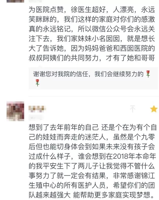 因为我们收到了很多很多小伙伴的反馈,比如给我们送锦旗啊,写感谢信啊,或者在微信公众号后台留言啊等等。 讲真,看到她们幸福的模样,听到她们感谢的声音,小编都觉得自己无比的自豪,感觉自己在做一件非常有意义的工作,成就感爆棚呢。 独乐乐不如众乐乐,小编今天就分享出来,让大家也沾沾喜气,就当是传播正力量了。 真的不打算夸夸我么? 运动医学部,收到一位初生妈妈写的日记。 日记中的妈妈,在前天度过了人生中的第一个母亲节,记录了孩子出生前的另外一个家-----西囡,那里有一群关心TA的叔叔阿姨(医生护士)和健身房里的美女姐姐。 看看这位妈妈是怎么描述我们的健身房小姐姐的:活力的婷婷阿姨,热情的鑫鑫阿姨,爱心小白姐姐,暖心的小沈姐姐,还有祈祷你快快来的瑶瑶姐姐···· (健身房里的美女姐姐们) 额,这位妈妈,婷婷和鑫鑫也是小姐姐好不啦? 言归正传,小编看得都恨不得马上去健身房骑几圈动感单车,不为别的,就为了多看看几位小姐姐朝气蓬勃、挥汗如雨的身影。 这位妈妈还说,遇见最暖心的单车房和我们,是件幸福的事情。其实对我们而言,遇见您这么认可我们的妈妈,也是我们最幸福的事情。 帮助每一位夫妻成为父母,是我们的责任和使命,但是能得到大家的信任和感恩,也是对我们工作的高度肯定和鼓励。 还有许许多多小伙伴,和这位妈妈一样,即使在生产以后,也不忘表扬和关注我们。继续把我们分享给更多需要帮助的小伙伴。 可能很多刚来院的小伙伴,特别希望能从那些顺利怀孕的妈妈们那里讨教经验,到底自己怎么做也才能如此好运? 估计答案不是什么移植后一直躺着啊,多喝脉动啊,多吃西柚啊,不吃苹果啊,和别人吵架等等(上面这些“秘方”都是不科学的)。肯定是放松心情,适当运动,听医生的这些。 大家发现了么?心态积极向上的人,‘孕气’都不会太差,因为这样的她们,会互相理解,互相包容,不容易气急败坏,急火攻心。 和他们交流就如浴春风一样,特别愉悦。 看到这里,你是不是也在幻想那种美好的画面?甚至想和她们做朋友? 毕竟人都是会喜欢美好的事物的呀。 所以让我们一起来心怀感激、心态平和的面对彼此,面对生活。聪慧如你,也一定可以和她们一样,顺顺利利的怀上宝宝,顺顺利利的成为人生赢家哒。 我们一起来加油。 最后如果你有什么想和小编分享的,欢迎给我们留言哦,你们的每一条小编都是会仔细看哒。如果不希望被别人看见,或者想分享你的故事给我。可以添加小编的私人微信号。 Ps:小编只倾听你的心声,专业的医学知识,还是要咨询在线中心的小姐姐或者医生哦。另添加请备注*故事*。